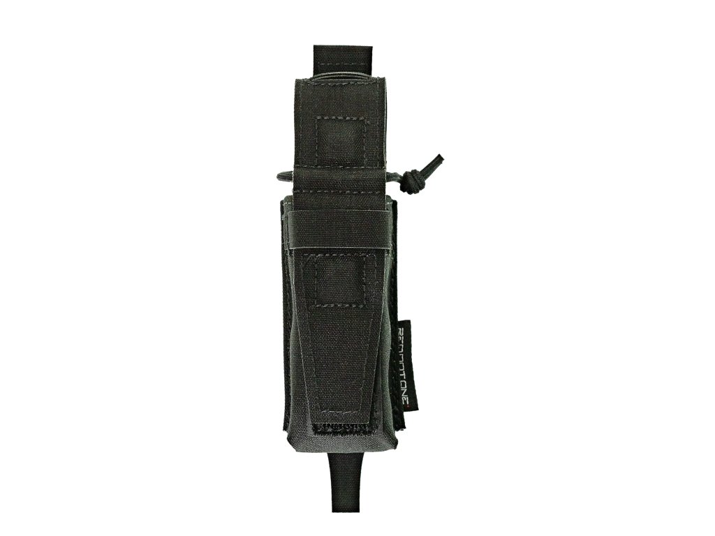 Pouzdro je dále vybaveno odnímatelnou flexibilní klopou, kterou lze stáhnout zepředu dozadu. Klopa také slouží jako zajišťovací systém, který fixuje zásobník v pouzdře. Zároveň jej chrání před mechanickým poškozením při plazení a jiných činnostech, které vás mohou potkat v boji, a při kterých bývá dno zásobníku výrazně namáháno.