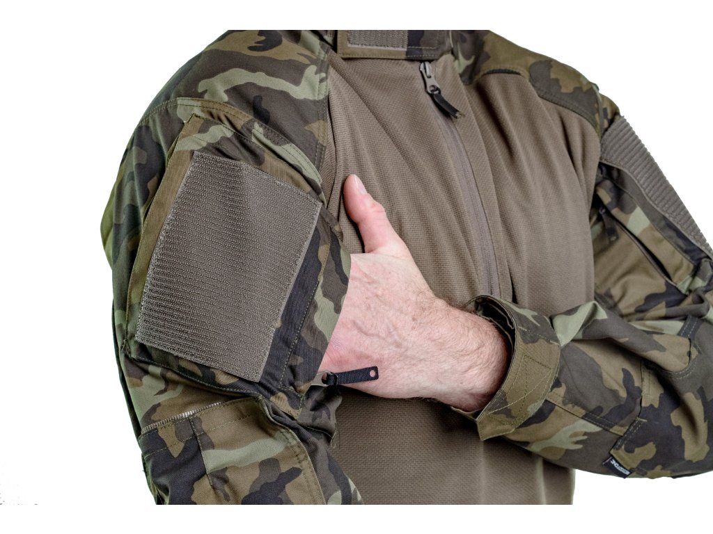Ärmel und Schulterpartien sind aus dem gleichen robusten Material gefertigt wie die ALPHA Kampfanzüge und bieten hohe mechanische Widerstandsfähigkeit sowie Schutz exponierter Körperbereiche. Die Ärmel verfügen über funktionale Taschen und bewährte Details klassischer Combat Shirts.