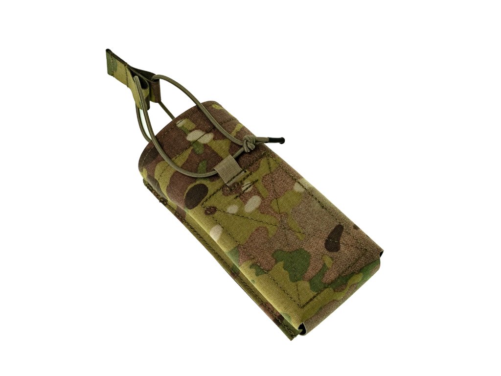 La funda también cuenta con una solapa flexible extraíble que se desliza de adelante hacia atrás. Esta solapa actúa como sistema de bloqueo, fijando el cargador en la funda y protegiéndolo de posibles daños mecánicos durante el arrastre y otras actividades que puedan ocurrir en combate, donde la parte inferior del cargador sufre una gran presión.