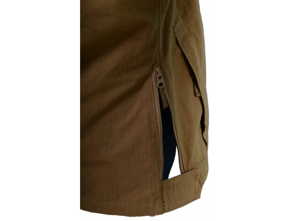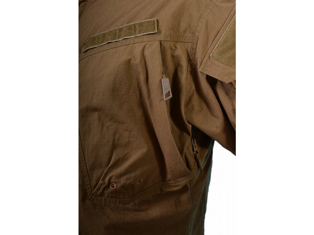 Les poches des manches sont dotées d'ouvertures sur le dessus et sur les côtés. Les poches poitrine avant restent accessibles même avec un gilet pare-balles. Par ailleurs, les curseurs des fermetures éclair sont situés à l'extérieur de l'espace sous le gilet pare-balles afin d'éviter les blessures secondaires en cas de contact avec celui-ci.