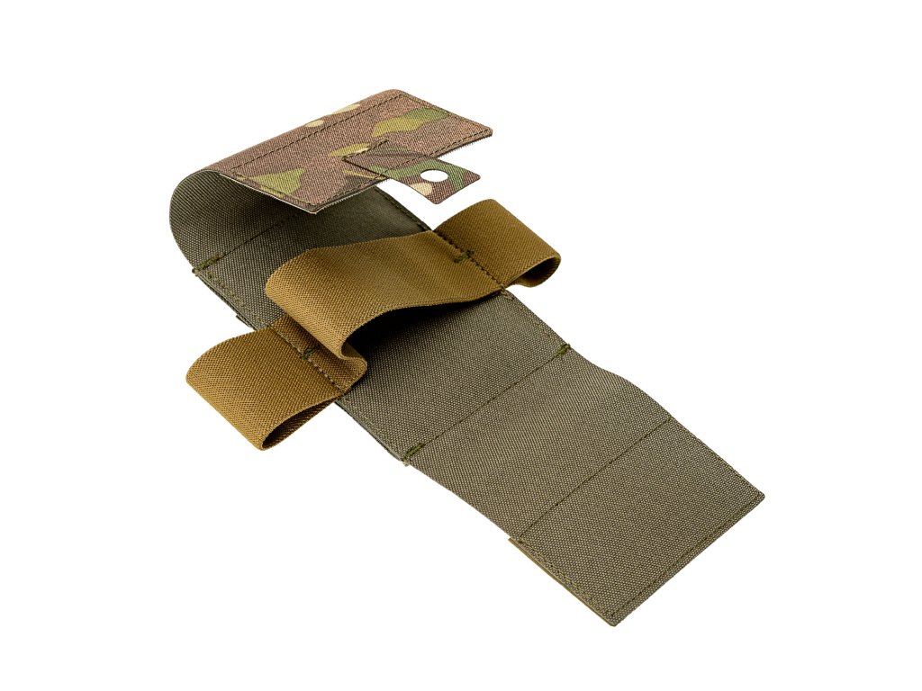 L'étui IFAK S est conçu pour ranger un garrot tactique, de la gaze hémostatique (gaze de combat) et un bandage compressif. Son agencement interne offre suffisamment d'espace pour le matériel de premiers secours de base destiné aux blessures par balle et autres blessures accompagnées d'hémorragies importantes.