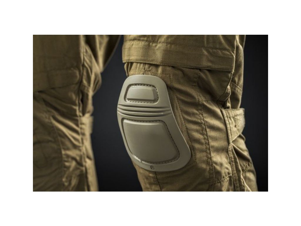Le pantalon est équipé de deux poches genoux compatibles avec tous types de genouillères, notamment la genouillère de terrain Crye Precision® AirFlex™ dotée de poches externes spécifiques. Cette solution est brevetée par Crye et le pantalon 4M OMEGA bénéficie d'une licence pour son utilisation. La hauteur des poches pour genouillères est réglable grâce à des cordons élastiques et des attaches situées dans les poches supérieures du pantalon.