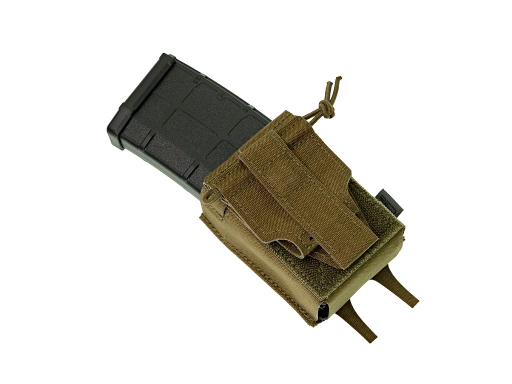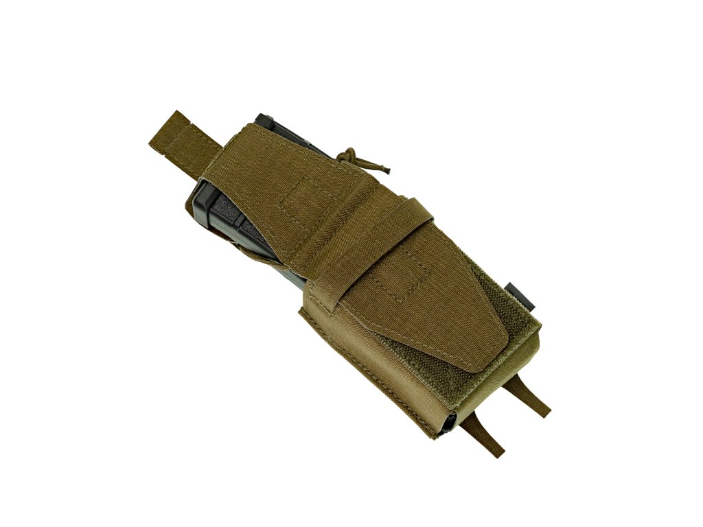 Nos porte-chargeurs sont uniques, tant par leur conception que par leurs fonctionnalités. Le chargeur est maintenu principalement par deux blocs de plastique souples à l'intérieur du porte-chargeur, qui le fixent dans sa partie inférieure. Le porte-chargeur est conçu pour que ces deux blocs suffisent à maintenir un chargeur plein, même en position verticale.