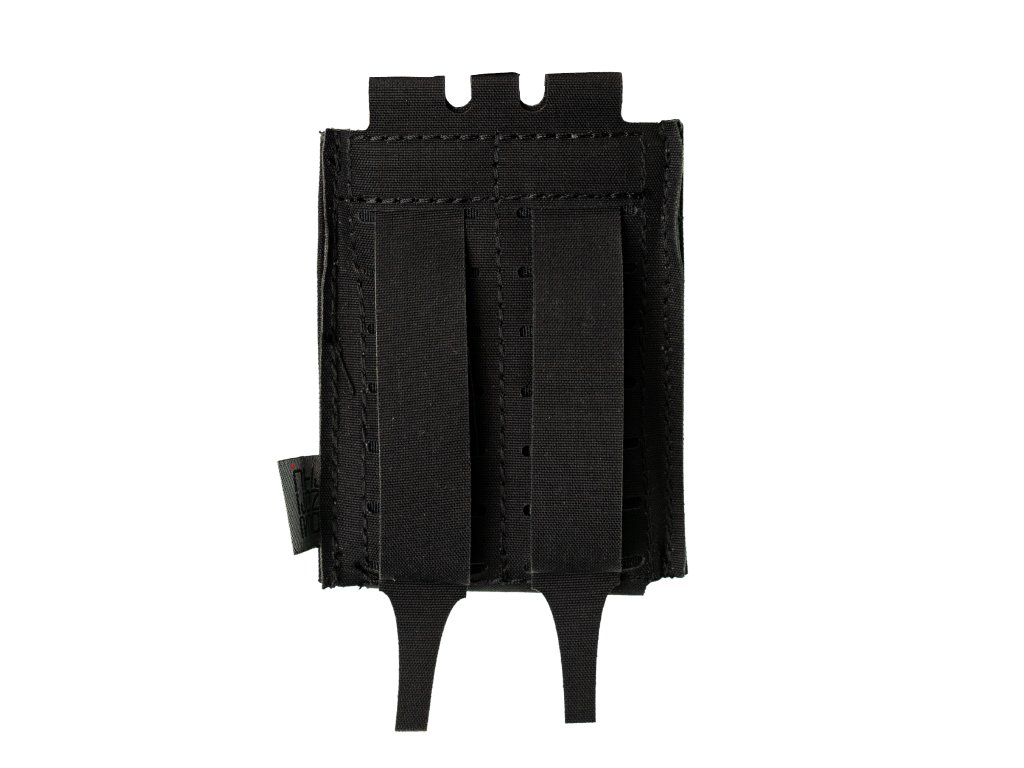 Si vous souhaitez porter un ou plusieurs étuis ouverts sur votre gilet, c'est tout à fait possible. Le kit comprend un cordon élastique souple avec un tire-disque pour chaque étui. Une fois le rabat retiré, l'étui se transforme facilement en étui ouvert, idéal pour un rechargement rapide.