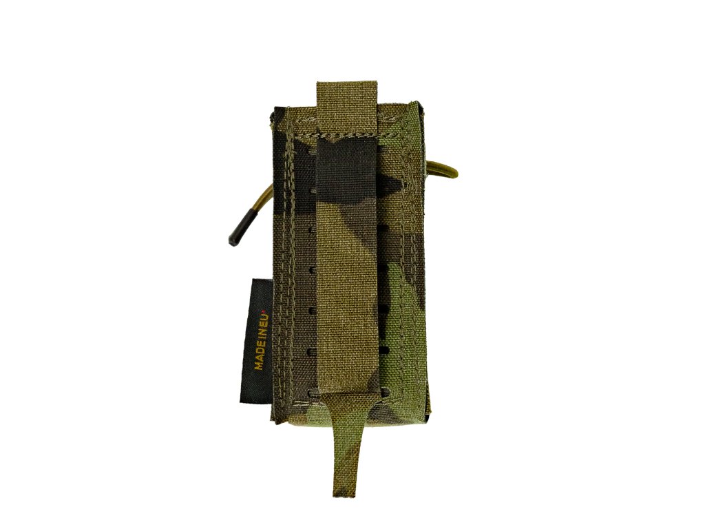 Jeśli chcesz używać jednej lub kilku ładownic na kamizelce w konfiguracji otwartej, bez klapy, nie stanowi to problemu. W zestawie z każdą ładownicą znajduje się elastyczna gumowa linka ze stoperem, dzięki której po zdjęciu klapy można łatwo przekształcić ładownicę w wersję otwartą do szybkiej wymiany magazynka.