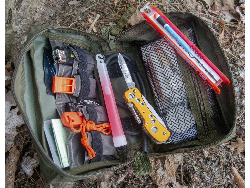 wewnętrzne przegrody do przechowywania zalecanego sprzętu survivalowego